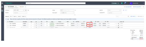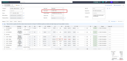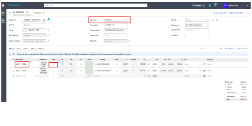Enter part number and quantity. Set Sale Type to Wholesale.