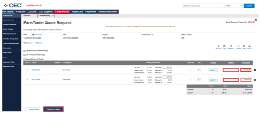 Enter Sales Order # in the Quote# field in OEC. Set the delivery date and click ‘Respond to Quote’